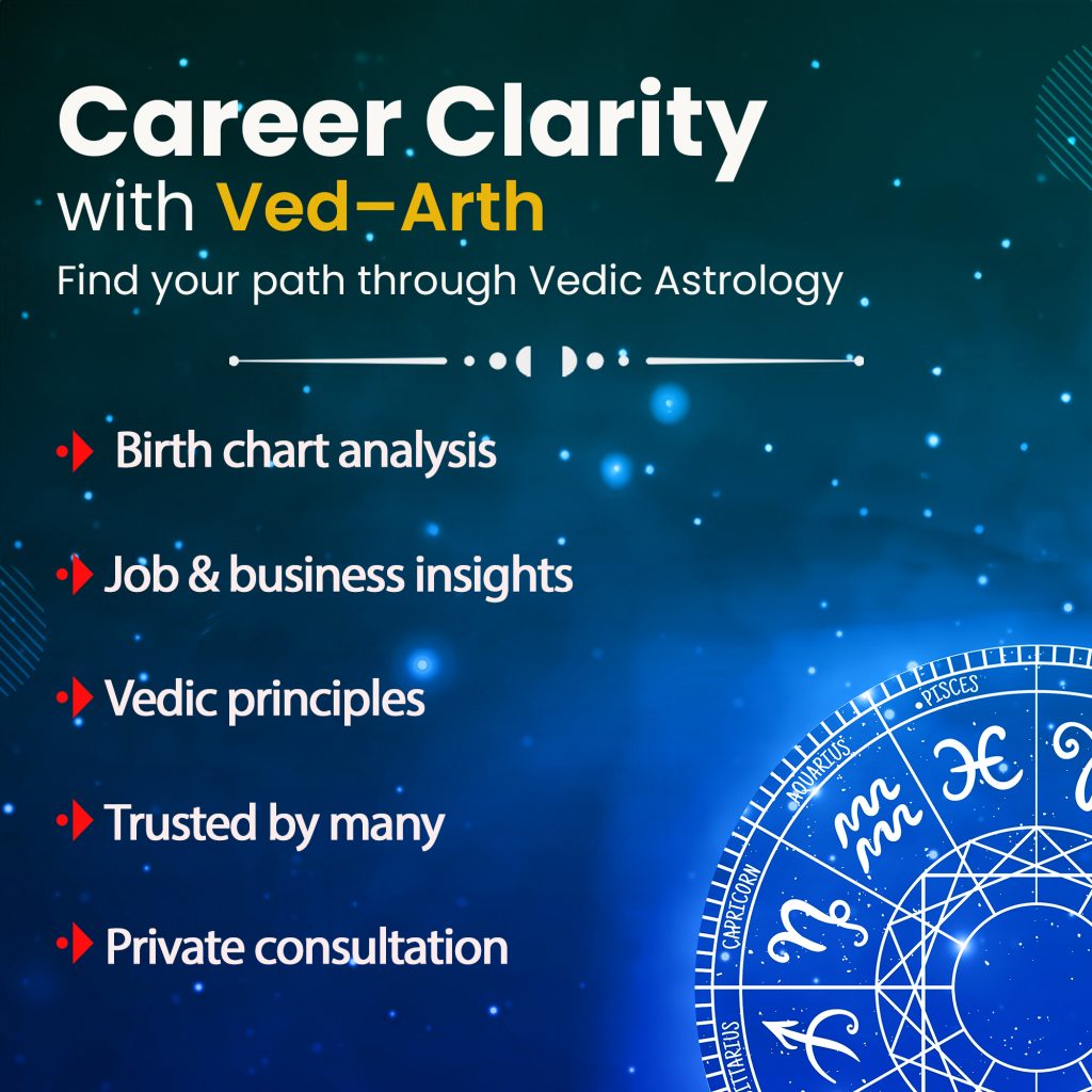 At Ved–Arth, we believe your career isn’t chosen by chance—it’s shaped by your planetary blueprint. Our career consultation helps uncover the right path using your birth chart and planetary timing.